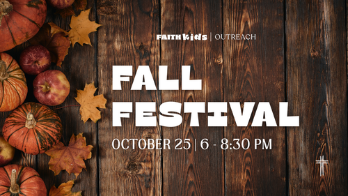 Join us for an evening of family fun at our Fall Festival! We’ll have games, food, music, and activities for all ages. Bring your friends, neighbors, and the whole family for a night of laughter, community, and fall-themed fun. Admission is free, and everyone is invited!